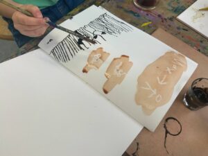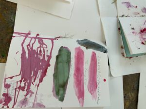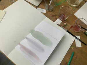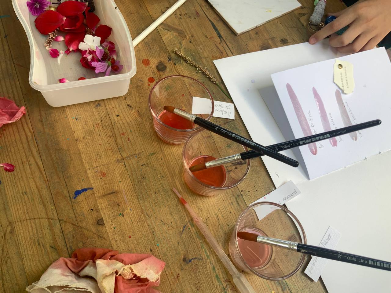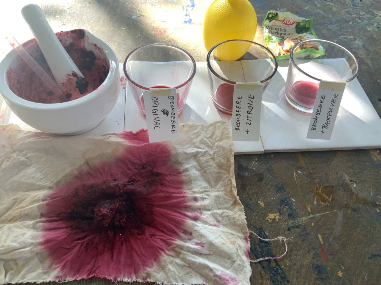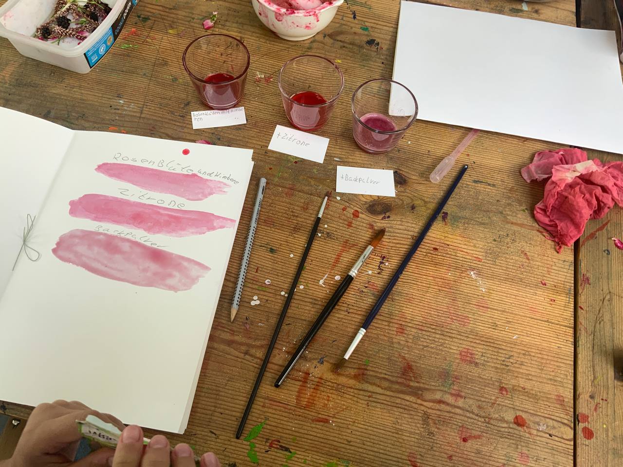 In diesem Workshop haben wir aus Pflanzen und Naturmaterialien eigene Farben hergestellt. Dabei wurde experimentiert, gemischt und geforscht: Wir untersuchten zum Beispiel, wie sich Farben durch die Zugabe von Natron oder Zitrone verändern und wie sie auf unterschiedlichen Materialien wirken. Unsere Beobachtungen und Ergebnisse haben wir in individuell gestalteten Forschungsbüchern dokumentiert.