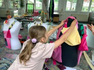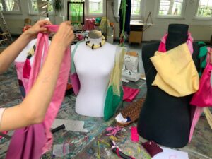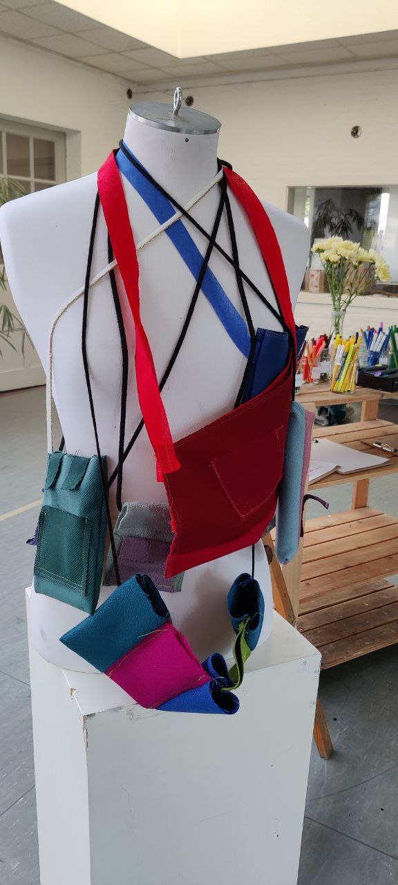 In diesem Workshop hatten wir die Möglichkeit, unsere eigene Tasche zu entwerfen und zu nähen. Zu Beginn sammelten wir unsere Ideen in Form von Skizzen. Anschließend setzten wir unsere Entwürfe mit Stoffen und verschiedenen Materialien um – dabei nutzten wir auch spannende Upcycling-Materialien wie alte Fahrradschläuche.